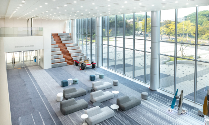 단차를 둔 계단식 좌석과 라운지 가구를 배치하여 편안한 휴식 공간을 제공합니다.